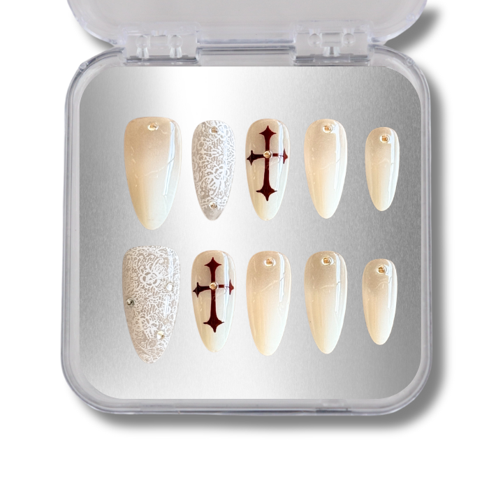 Removal: Soak fingers in warm water for 15 mins, add natural oil and body soap in water if needed. Use wooden stick to gently separate press-on nails off.