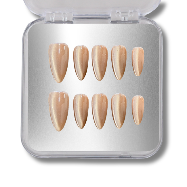 Jello is a sheer, warm nude set with a glossy, jelly-like finish that melts seamlessly into your natural nails. Softly tinted with a golden undertone, it delivers a clean, hydrated look with a subtle glow.