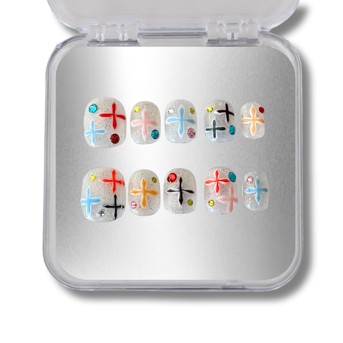 Removal: Soak fingers in warm water for 15 mins, add natural oil and body soap in water if needed. Use wooden stick to gently separate press-on nails off.