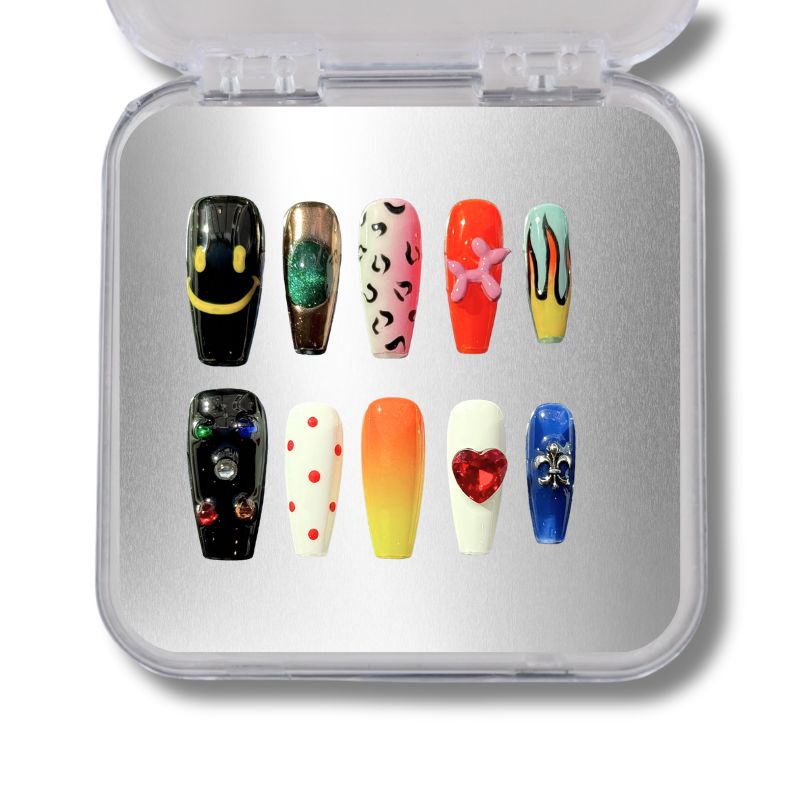 • G-Dragon inspired press-on nails with bold, eclectic designs