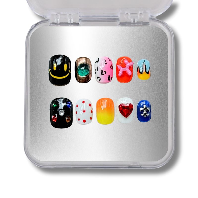 • G-Dragon inspired press-on nails with bold, eclectic designs
